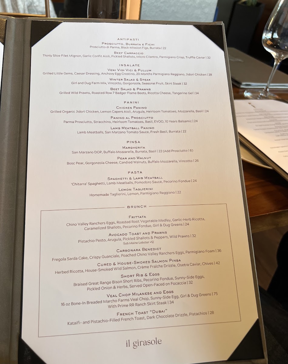 Il Girasole in Costa Mesa redefines Italian dining with a modern, elevated twist on traditional recipes. The menu masterfully balances comforting flavors with innovative presentations, offering standout antipasti like the tangy Arancini, fresh Crudo flown in from Japan, and delicate Polipo with squid ink crisps. For mains, the Gnocchetti Sardi, Risotto Asparagi, and perfectly cooked Costata steak shine, often highlighted by inventive additions like ravioli atop the filet, enhancing each bite with rich, complex textures.